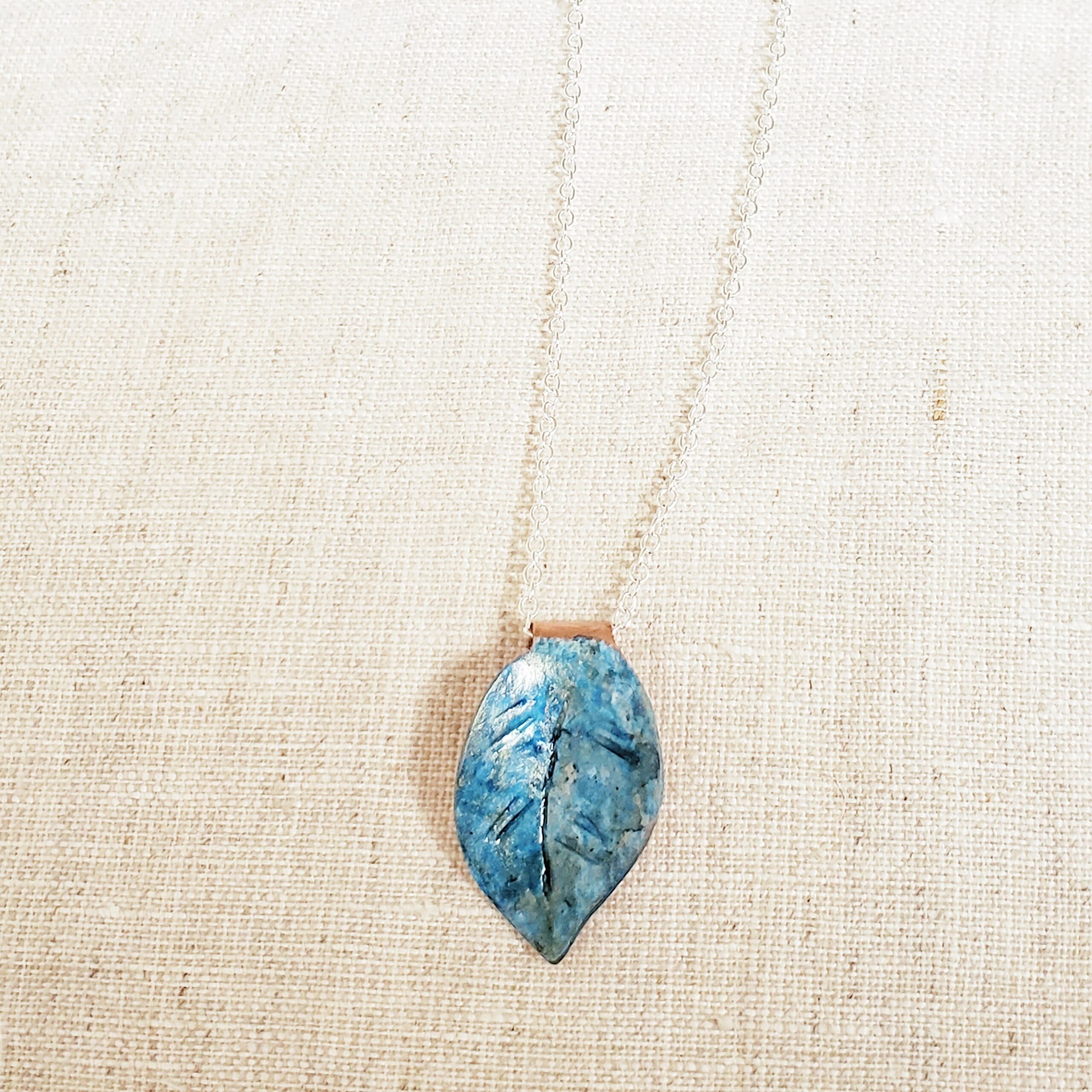 Hand-forged copper leaf, around 2 to 3 cm long.